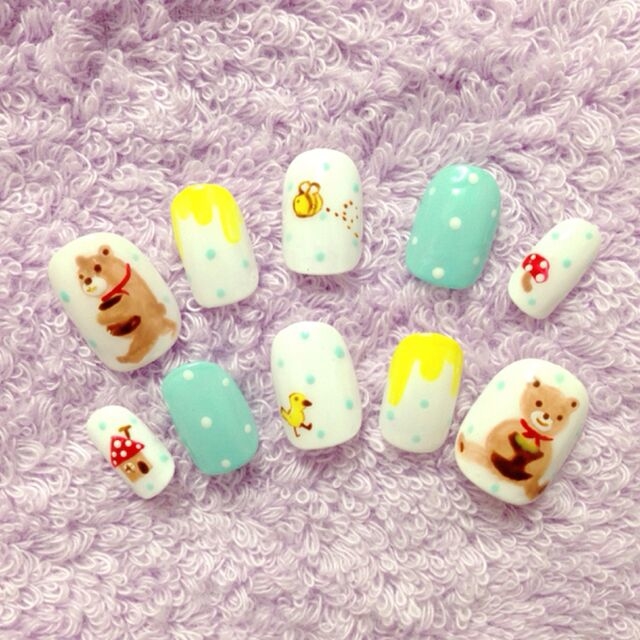 ディズニーのネイルデザイン30選! 簡単なやり方やプリンセスや人気のドナルドも登場 みーこ 大好きなディズニーキャラクターといつも一緒にいられるネイルアート。 ディズニーへ遊びに行く時にキャラクターをイメージしたネイルアートを楽しむ女性 ②とろーりはちみつレモンネイル 2種類のイエローを使って、とろーり濃厚ではちみつレモンのようなアートを作りました。 今にもはちみつがとろけてきそうなつややかさは、ジェルネイル風に仕上がるトップコートで表現しました。